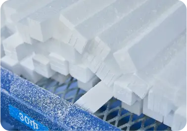 鋳造とは、高熱で溶かした金属を鋳型に流し込み、多用な形の金属製品(=鋳物)を作ることです。一般的な鋳造では、木で鋳物の型を作る木型法が採用されています。フルモールド鋳造法(=Full Mold Casting 以下FMC法)では、木型の代わりに発泡スチロールで模型を作り、それを基にして鋳物を造ります。KIMURAのFMC法は、木型法よりも複雑で精度の高い鋳物を、短期間で製造できるのが特長です。